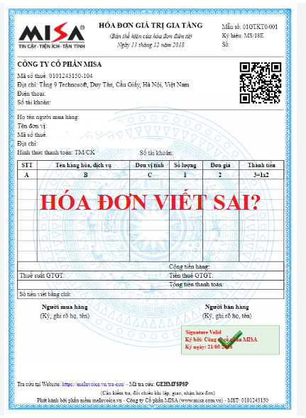 Xử lý hóa đơn viết sai